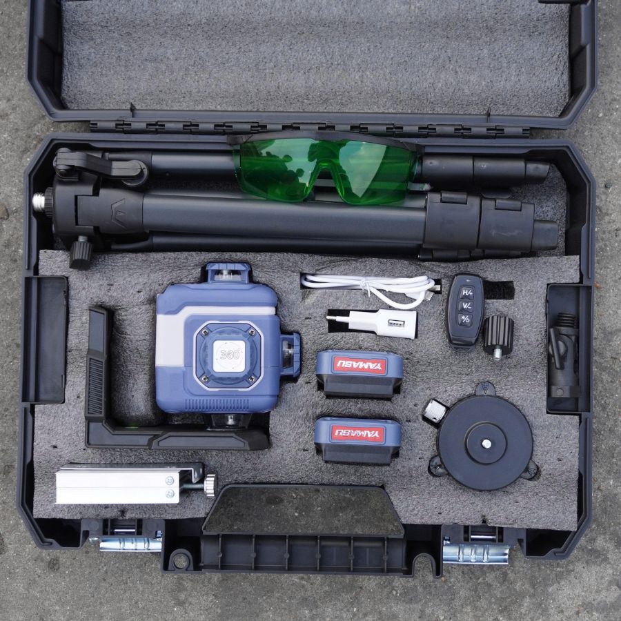 - Phụ kiện: Hộp đựng nhựa vali chống sốc/ đế chỉnh cốt nền/ đế xoay đặt mặt phẳng/ giá treo máy trên cao/ giắc nối chân 1.2m/ 2 pin / kèm chân nhôm 1M/ sạc 5v