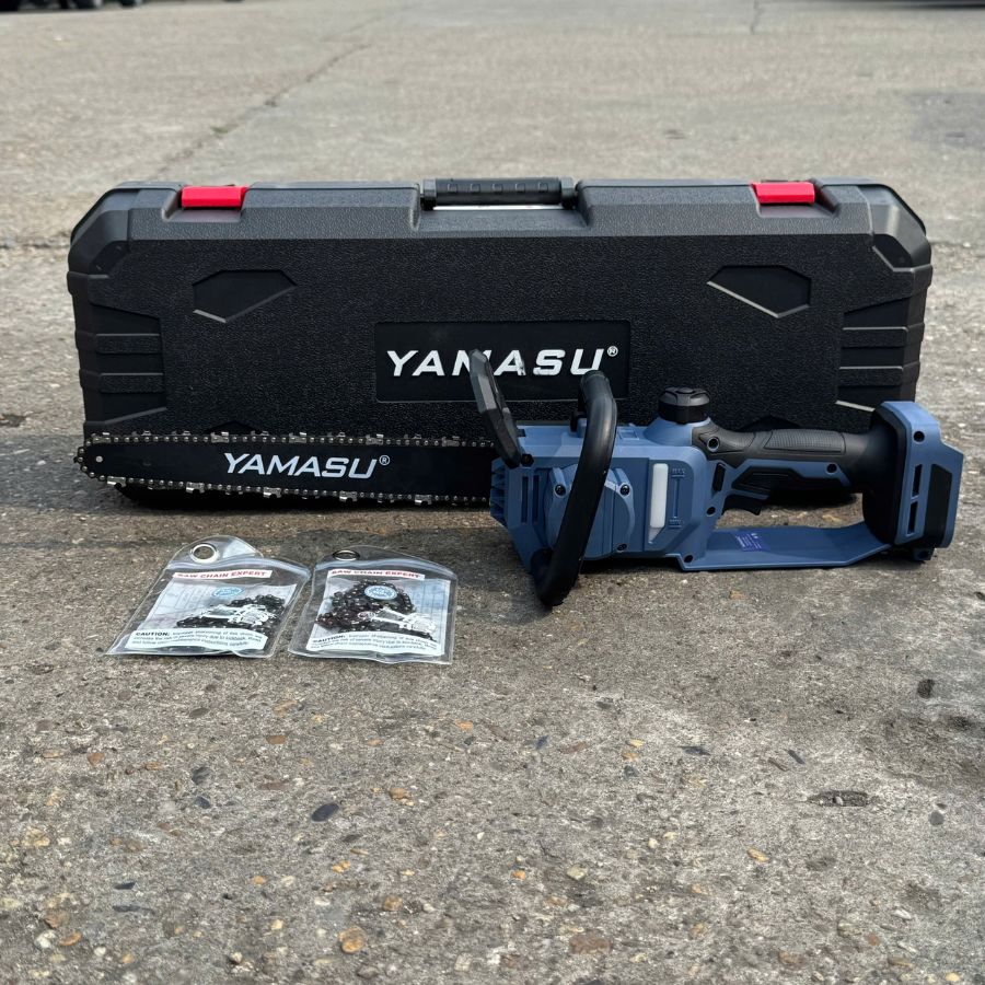 - Phụ kiện đi kèm: 2 pin 21v (4.5A), sạc đế , 1 thân máy, 3 dây xích, 1 hộp đựng bọc xích nhựa, hộp valy nhựa đựng máy xách tay.
